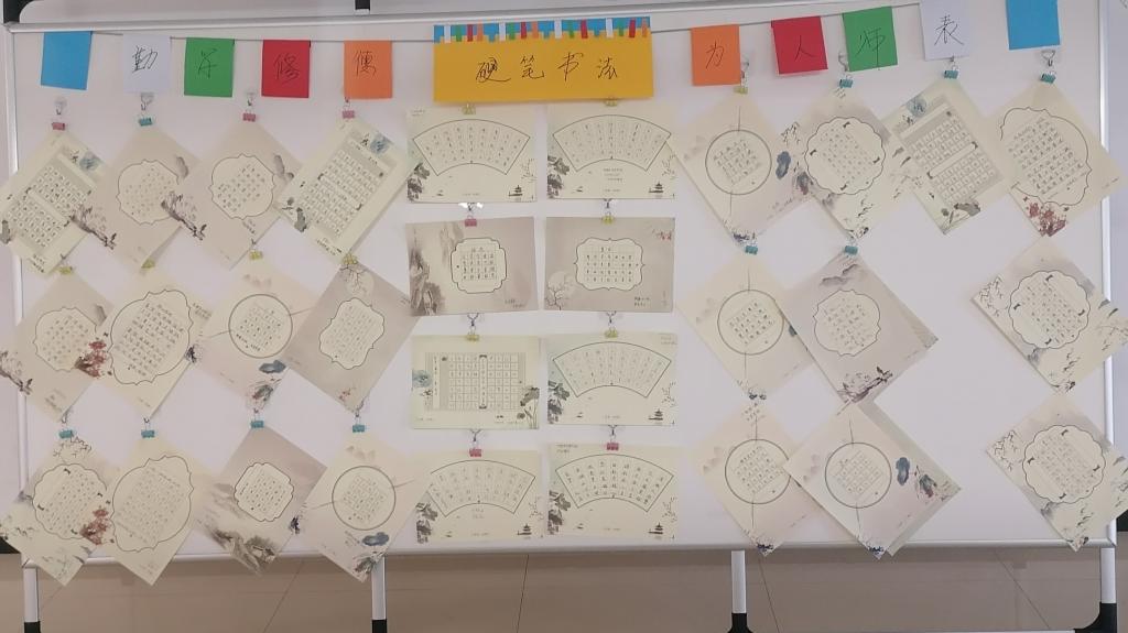 教务处有关强化卓越教师技能训练通知精神,并通过参加教务处组织的全校卓越教师项目经验分享学习会,物理系重新调整了卓越师范生技能培训活动计划,于5月21日~23日组织全体卓越师范生开展卓越教师技能训练活动,并在博雅楼二楼过道里展示出活动成果“两字一画”作品。