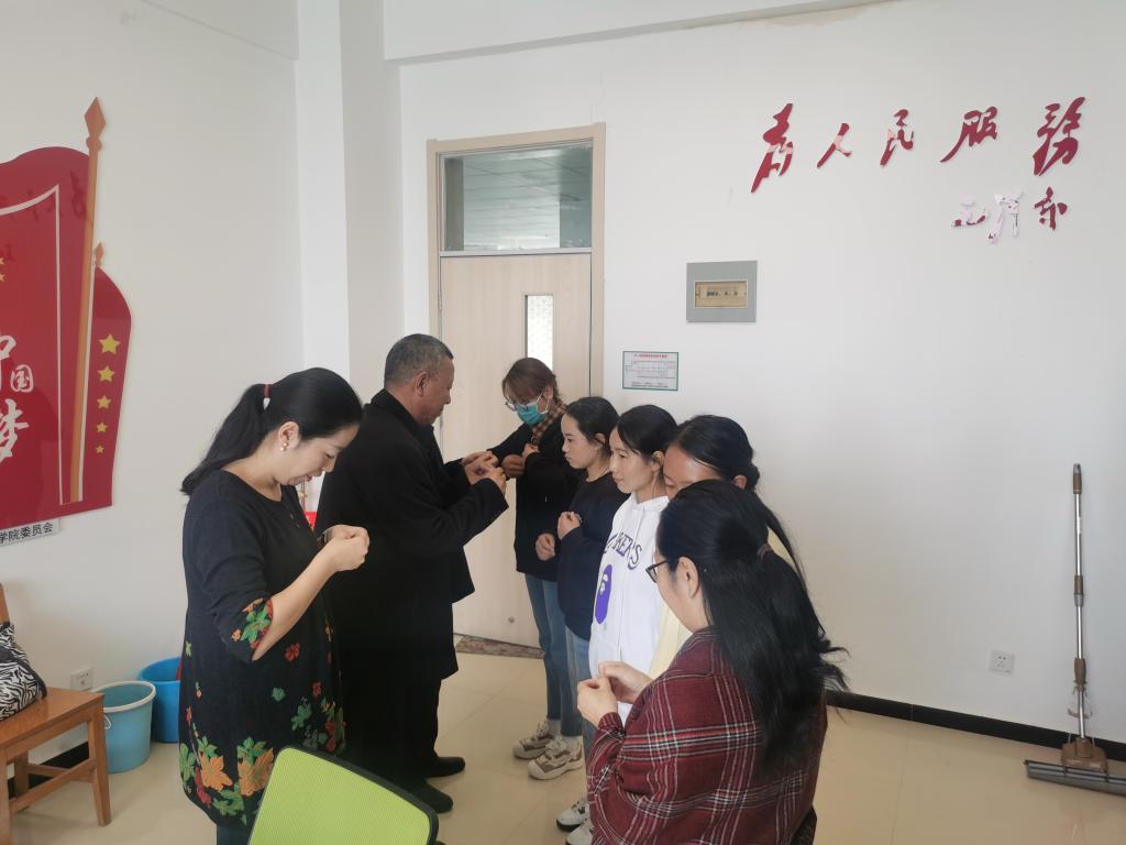 支部书记祁好道对4位即将奔赴顶岗支教一线的预备党员同志殷殷嘱托:要充分发挥党员的示范带头作用,以身作则。在教学一线踏实工作、把自己所学的理论知识应用于实践,从实践中不断分析总结,从而提高自身各方面的能力!