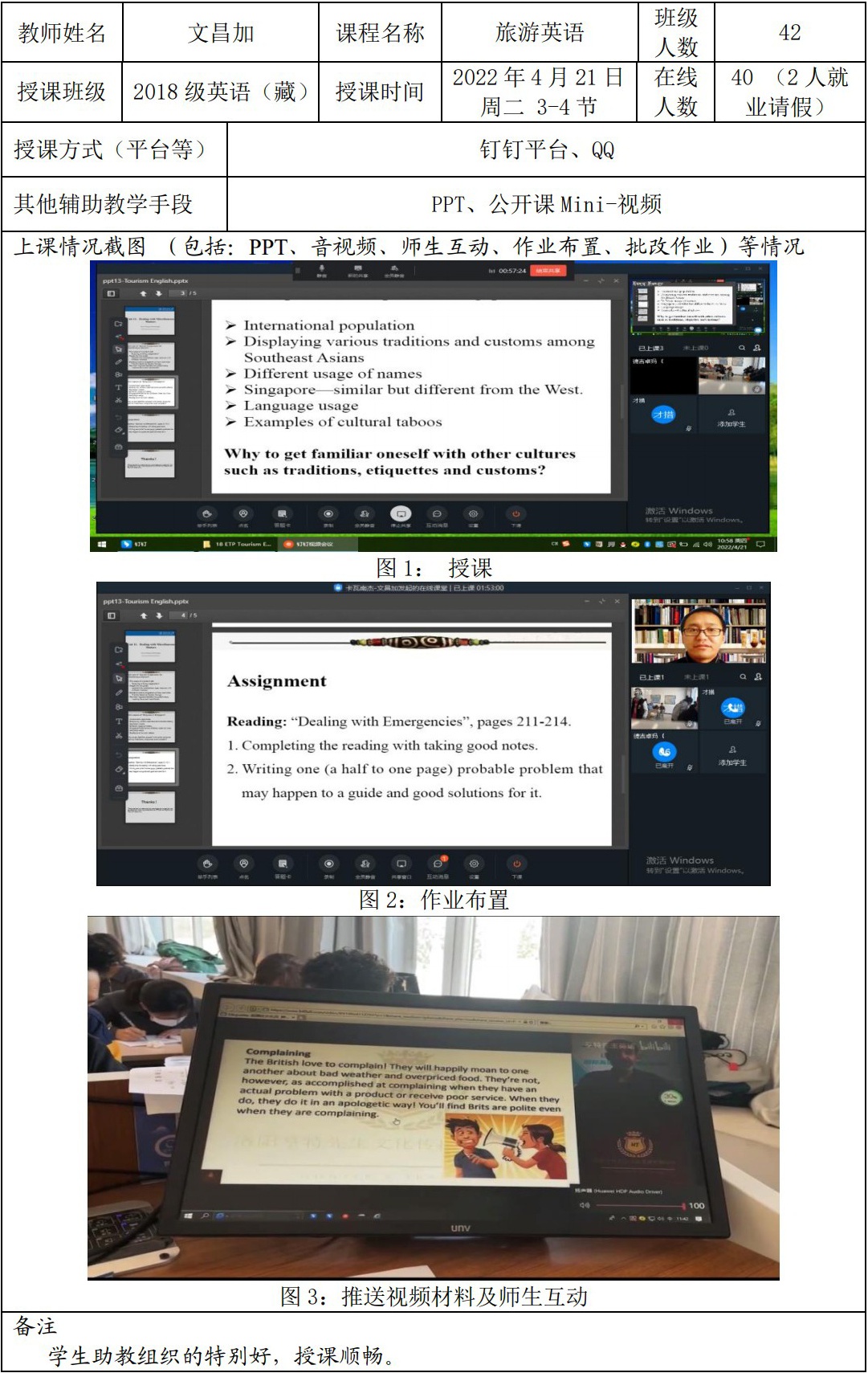 英语系认真贯彻落实有关西宁市在疫情防控期间实施静态管理的文件精神,根据《关于本科课程实施线上教学的通知》要求,按照学院的统一安排迅速开展线上教学工作,努力做到疫情期间线上“教学标准不降低、教学规范不走样、教学质量有保证”的总体要求。