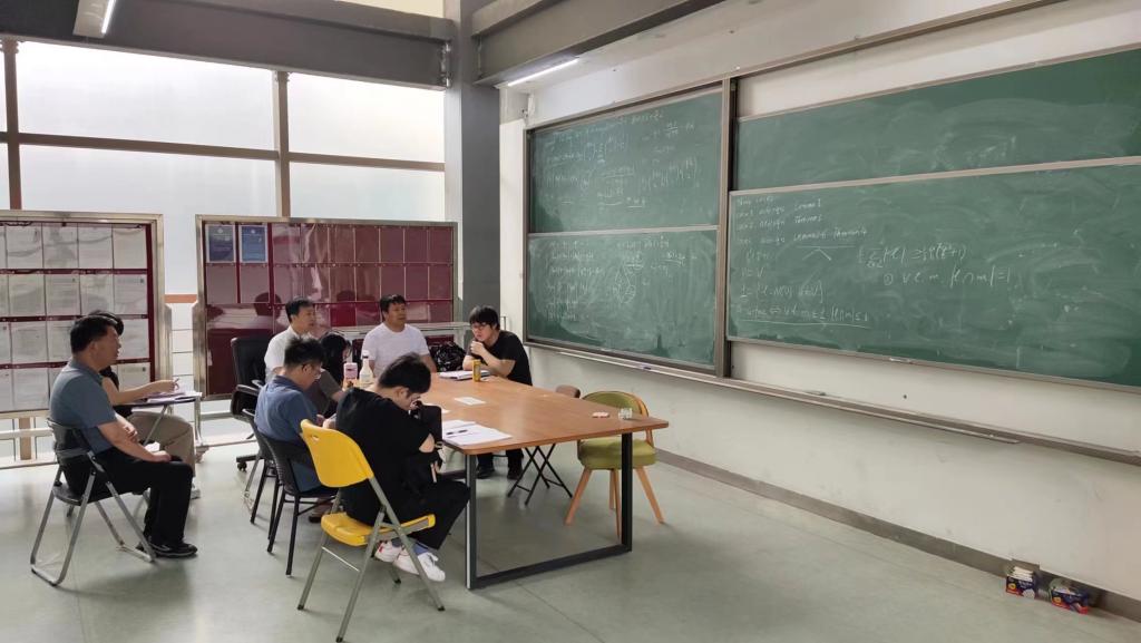 在数学与统计学院,考察组一行受到了数学与统计学院院长杜力力、副院长韩雨和数学系主任陶强的热情接待,双方围绕人才培养模式、课程建设和实践教学等内容进行了广泛交流,并就共建虚拟教研室、组建“常微分方程”一流课程建设等方面达成了初步合作意向,考察组一行还旁听了数学与统计学院黄泽军副教授指导学生的讨论课。