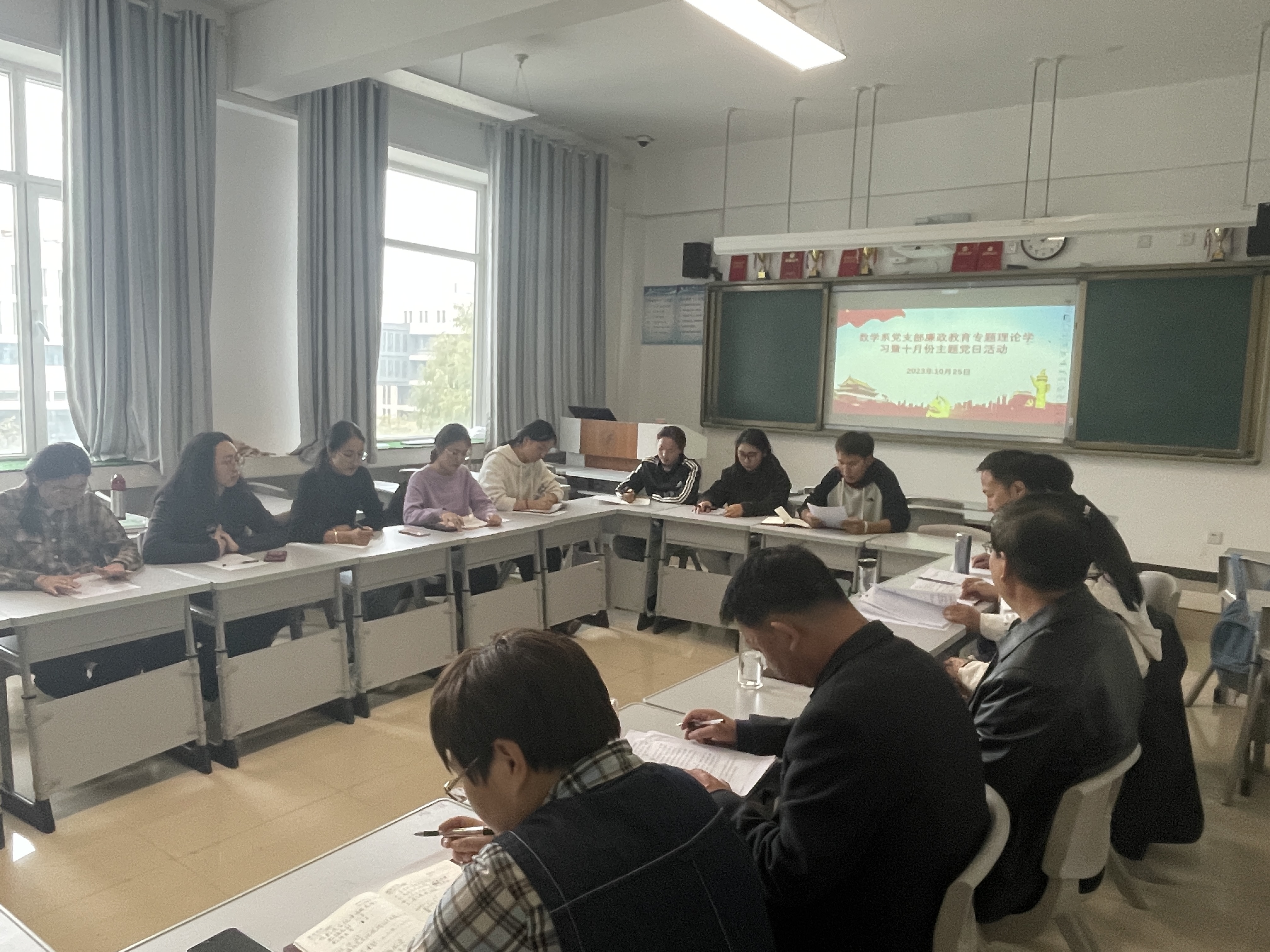 10月25日下午,数学系党支部召开党支部大会,集中开展党风廉政建设主题党日活动,会议由支部书记李成录主持,院长陈永良同志以普通党员身份参加了会议。