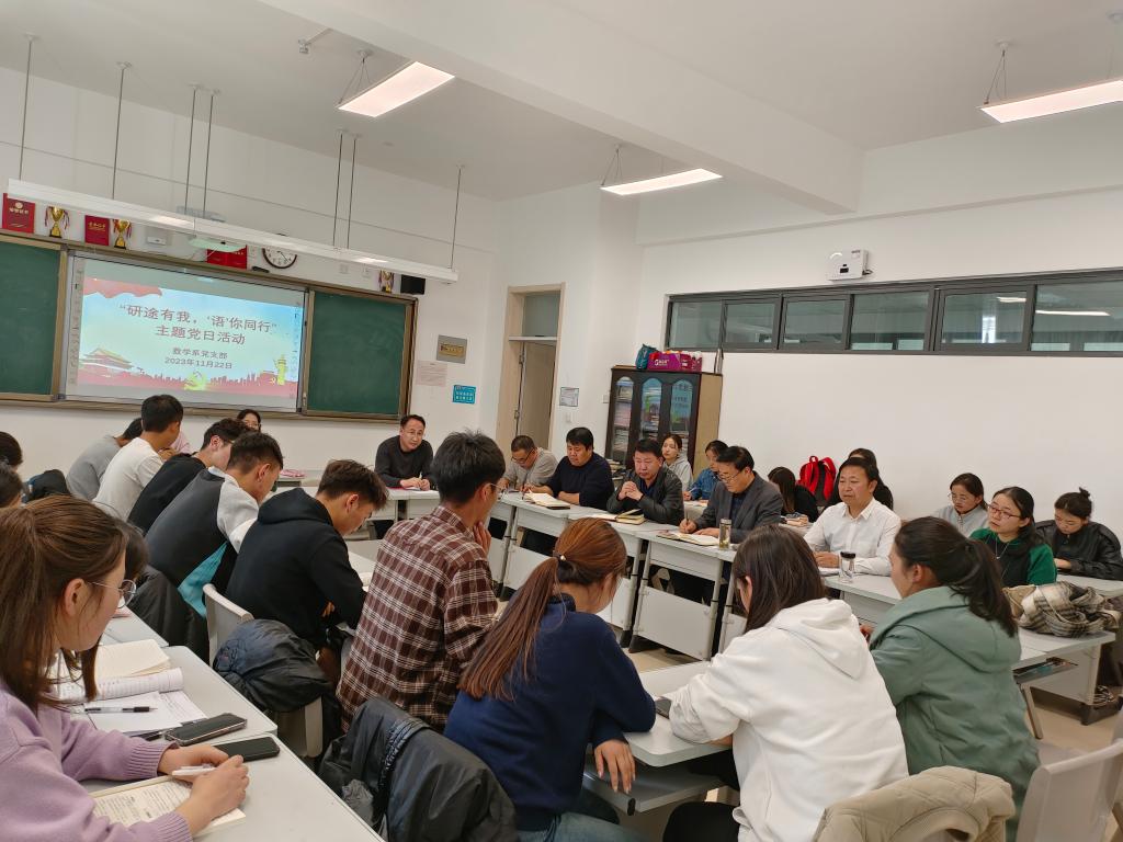 数学系党支部在西一楼303教室举行“研途有我,‘语’你同行”主题党日活动,数学系所有党员、20级全体考研同学共计33人参加了本次活动。会议由支部书记李成录主持。
