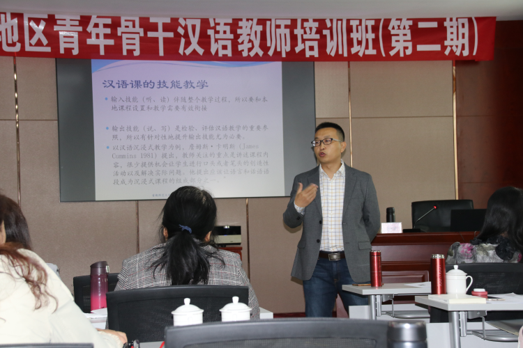 本次培训旨在让少数民族地区广大青年教师更好地了解汉语教学的前沿动态和教学理论的最新发展,学习MHK相关的研究与考试政策。来自新疆、吉林、宁夏、内蒙古、青海等民族地区11所院校的35名青年骨干汉语教师参加了培训。 培训由讲座、专题沙龙和设想与点评三个板块组成,讲座特邀全国语言学界知名专家学者做专题报告。郭风岚教授主持了专题沙龙,彭恒利教授当场作点评,与学员们进行了互动与讨论。 全国政协委员、北京语言大学学术委员会主任、《世界汉语教学》主编、博士生导师张博教授为学员们介绍了“语素法”“语块法”的理据与教学应用。 中国语言资源保护工程核心专家、中央民族大学东干学研究所所长、中央民族大学博士生导师苗东霞教授讲授双语教学方法论。 北京语言大学中国周边语言文化协同创新中心副主任、北京语言大学中国民族语文应用研究中心执行主任、博士生导师郭风岚教授主持专题沙龙。 北京语言大学语言科学院汉语考试与教育测量研究所副所长、北京语言大学考试安全研究中心主任彭恒利教授系统介绍了民族汉考的大纲修订与未来发展。 中国语言产业研究院核心成员、首都师范大学京疆学院副院长、美国明尼苏达大学孔子学院中方院长,首都师范大学惠天罡副教授分享二语教学中汉语课的教学策略。 3p视频 汉语教研室主任龙生祥副教授,长期从事汉语教学和研究工作,在藏区推行第二语言教学模式,主持了“藏族大学生汉语教学改革和教材建设”项目,本次培训就藏族大学生汉语教学改革和教材建设与大家交流经验。 培训期间北京语言大学出版社和青海师大3p视频 分别展示了各自开发编写的汉语教材。 北京语言大学出版社党委书记赵中平作总结发言,赵书记认为本次合作非常愉快,成效卓著,并希望将合作常态化。 3p视频 汉语教研室全体教师参加了本次培训,通过培训全体汉语教师不仅获得了语言学最前沿的知识和理论方法,在教学方面的困惑也得到了专家的指点,进一步提升了参训教师的教学和科研水平。