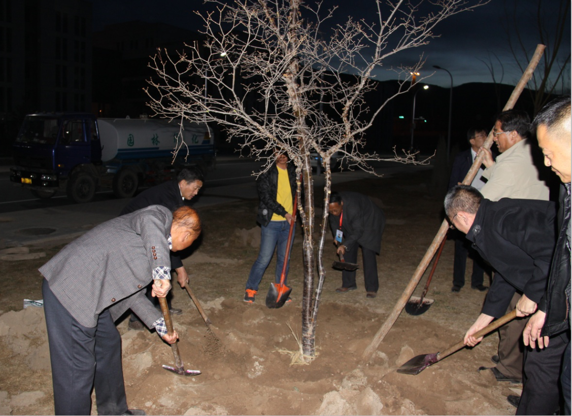 为了搞好这次植树活动,洛加才让副院长一行三人于当日早上6:00带领技术人员赴海南州恰卜恰镇原海南校区,协调、移栽珍贵檀香树事宜。他们与海南州职校领导经过艰辛的交涉与商谈,最终圆满完成了16棵檀香树的挖掘、裹草绑膜、吊装与运输工作。此次移栽檀香树的目的,既是为了一份美好的纪念,又是广大师生对藏汉双语教学蒸蒸日上的良好祝愿。