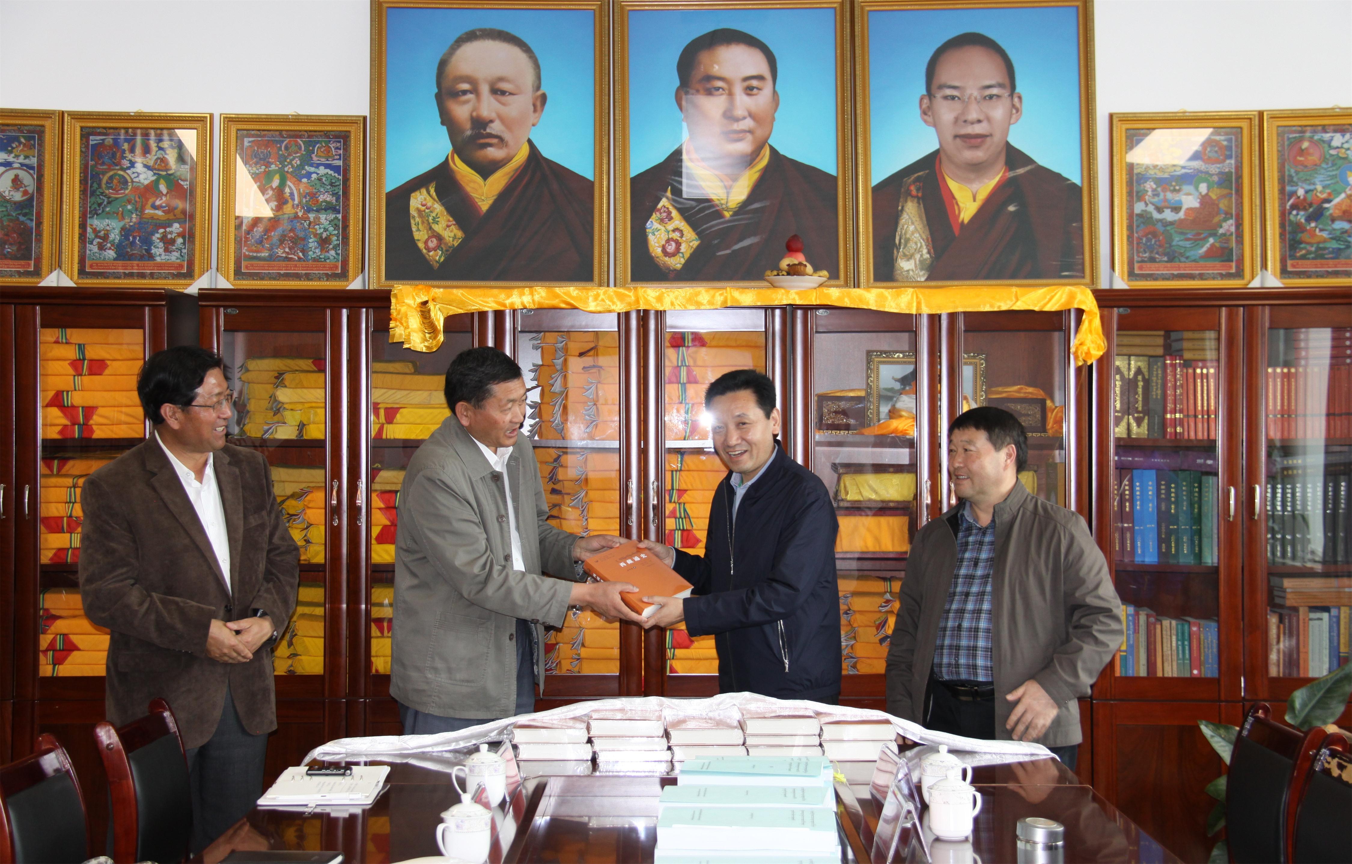 会上,中国藏学研究中心总干事郑堆先生从藏研中心基本情况和发展情况、此行目的做了简要介绍,并对我校历代班禅文集整理工作给予了高度评价。