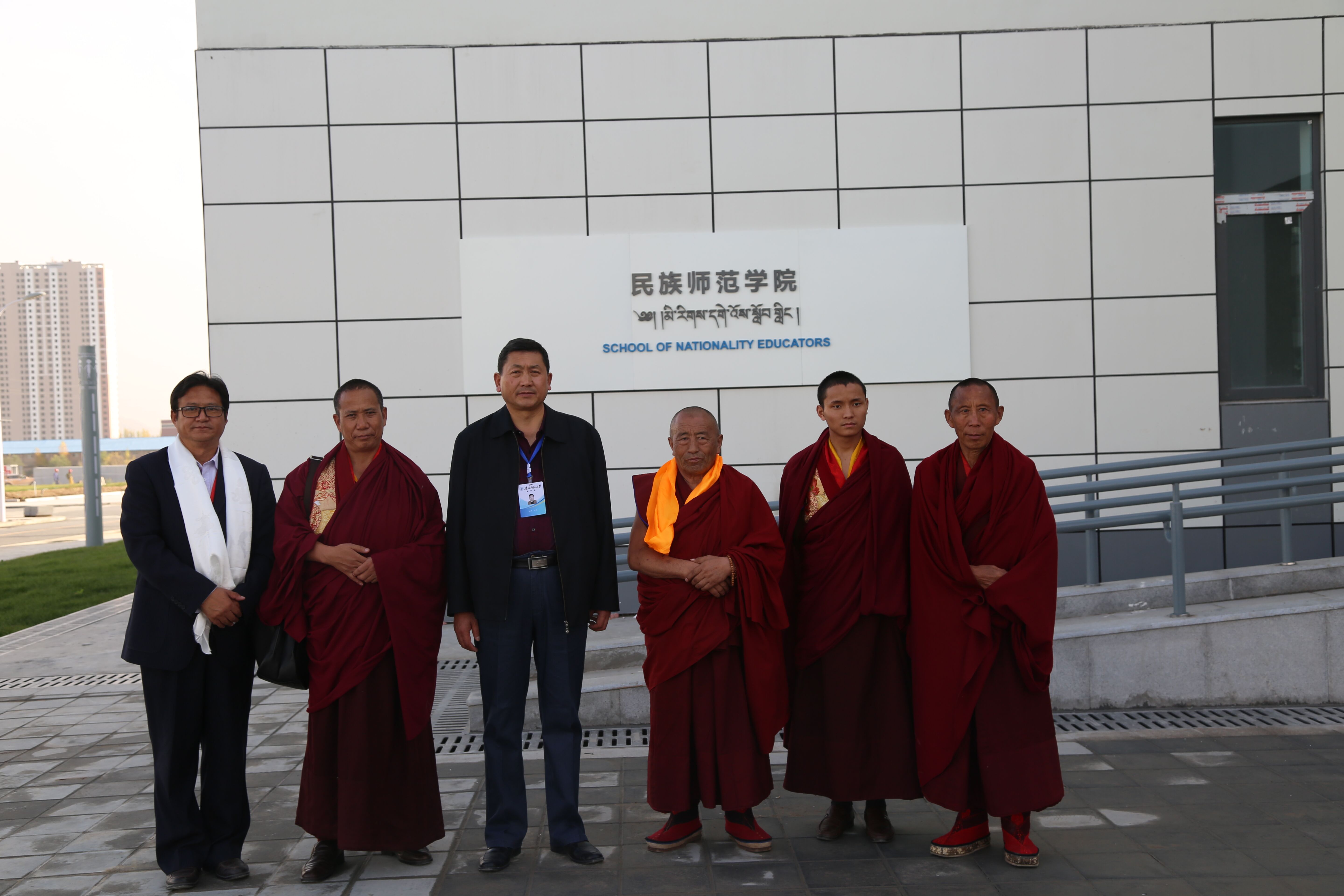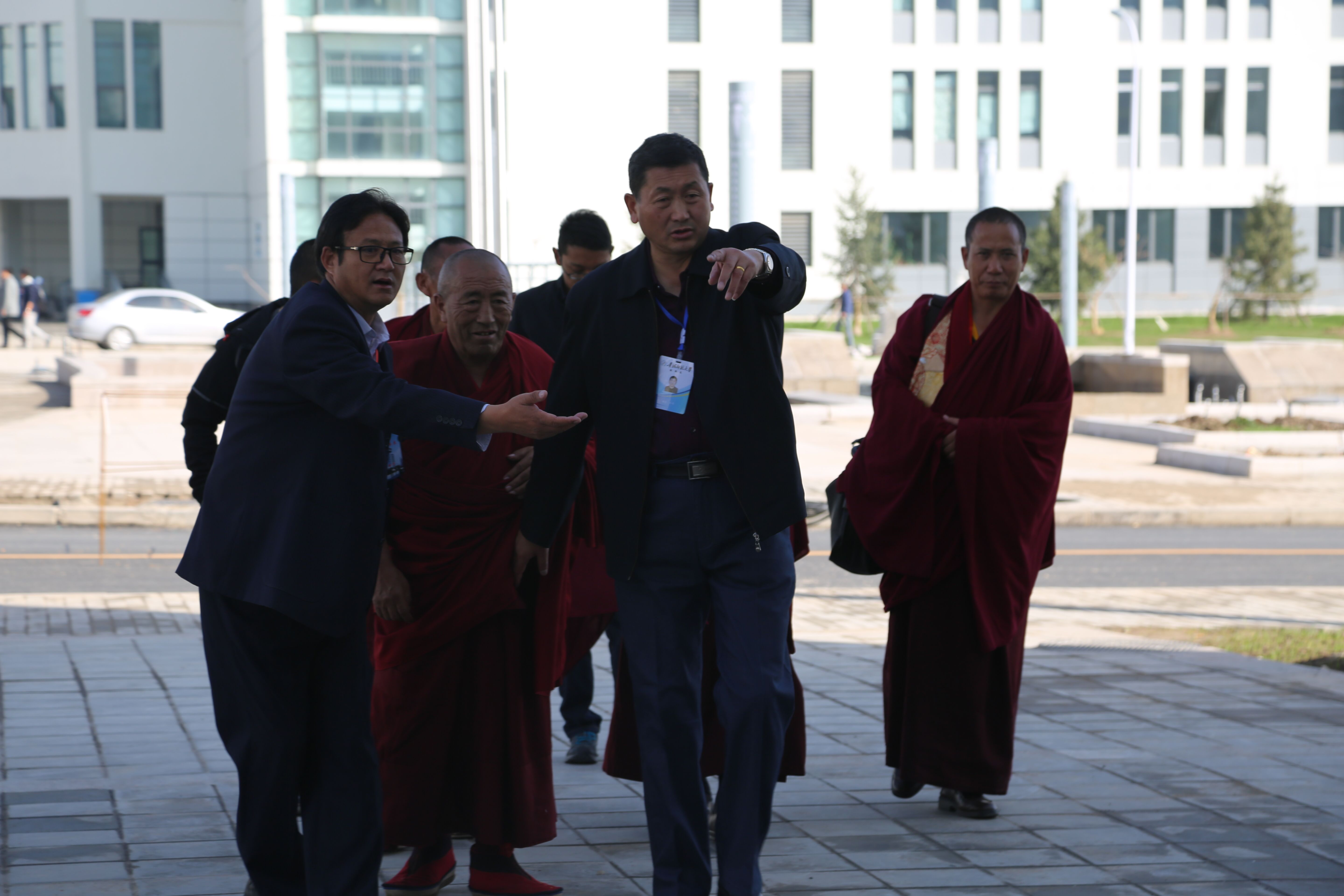 10月23日下午,风和日丽,西藏自治区政协副主席、西藏扎什伦布寺寺管会主任萨龙•平拉先生一行7人莅临我校新校区班禅研究院指导工作。