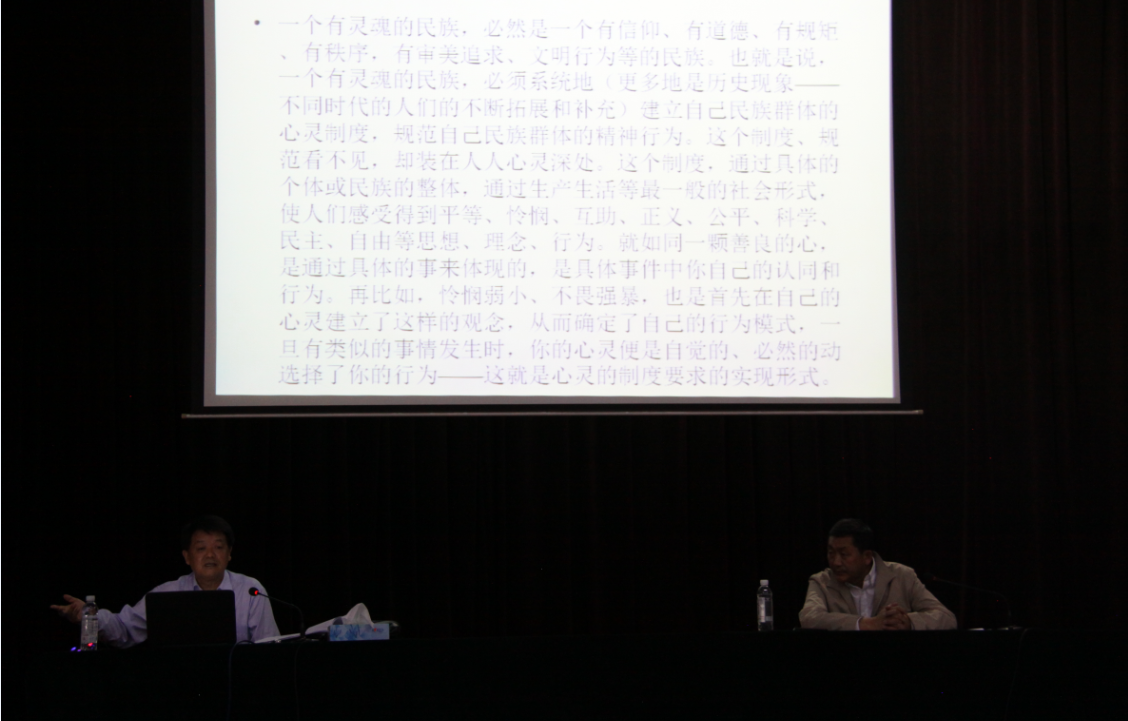 全体师生作了题为《认识与自信---关于文化的问题》的专题讲座,副校长扎布同志主持讲座,并与我院师生共同聆听了讲座。