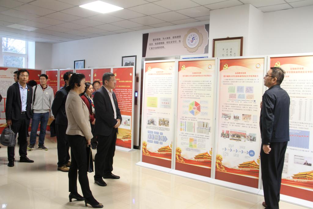 成果展览室观摩点由副院长陈永良负责介绍。重点介绍了学院历年来在校党委及院党委坚强领导下,全体教师奋发图强、努力进取,在党的建设、教育教学、科学研究、社会贡献等方面获得的重大奖励、表彰及各类成果,受到校领导及参观人员的赞扬。