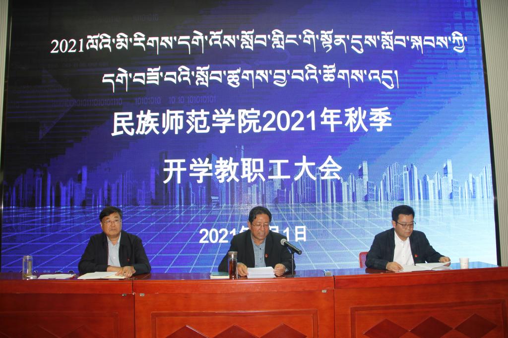会上,吉太加传达了习近平总书记在中央民族工作会议上的重要讲话精神,王荣全文传达了校党委书记毛学荣在2021年秋季学期开学工作会议上的讲话内容。