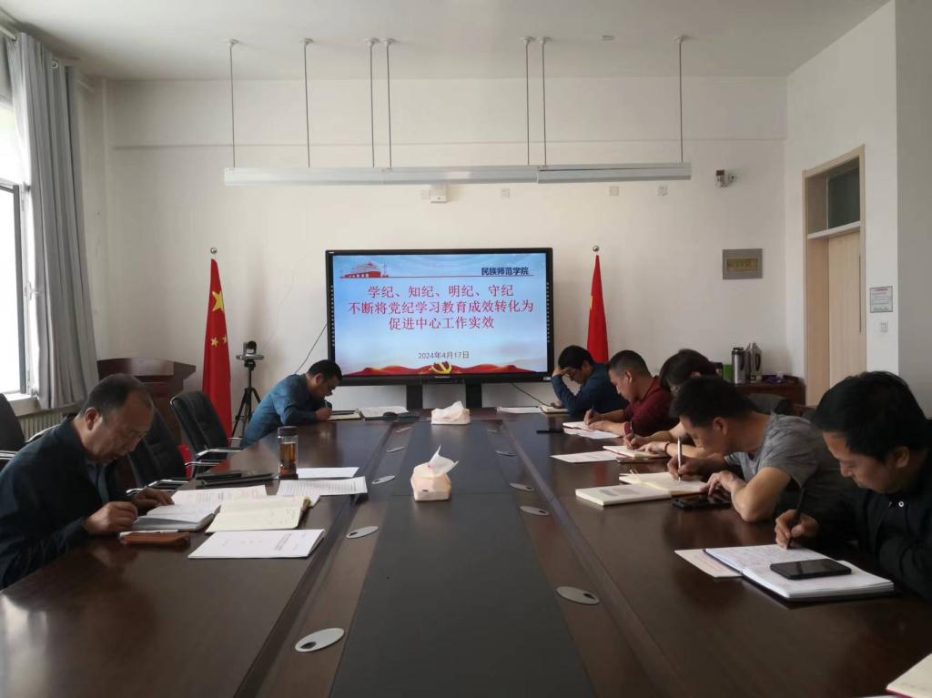 党委理论学习中心组党纪学习教育读书班的通知》,就学院党委理论学习中心组党纪学习教育读书班学习内容、学习时间、学习方法、学习安排及学习要求等作了说明。同时,就全院各基层党支部党纪学习教育读书班作了安排,要求各党支部要提高思想认识、同步行动,充分利用理论学习、“三会一课”、主题党日,扎扎实实组织党员开展好《中国共产党纪律处分条例》学习。会上,院领导领学领读了《中国共产党纪律处分条例》。