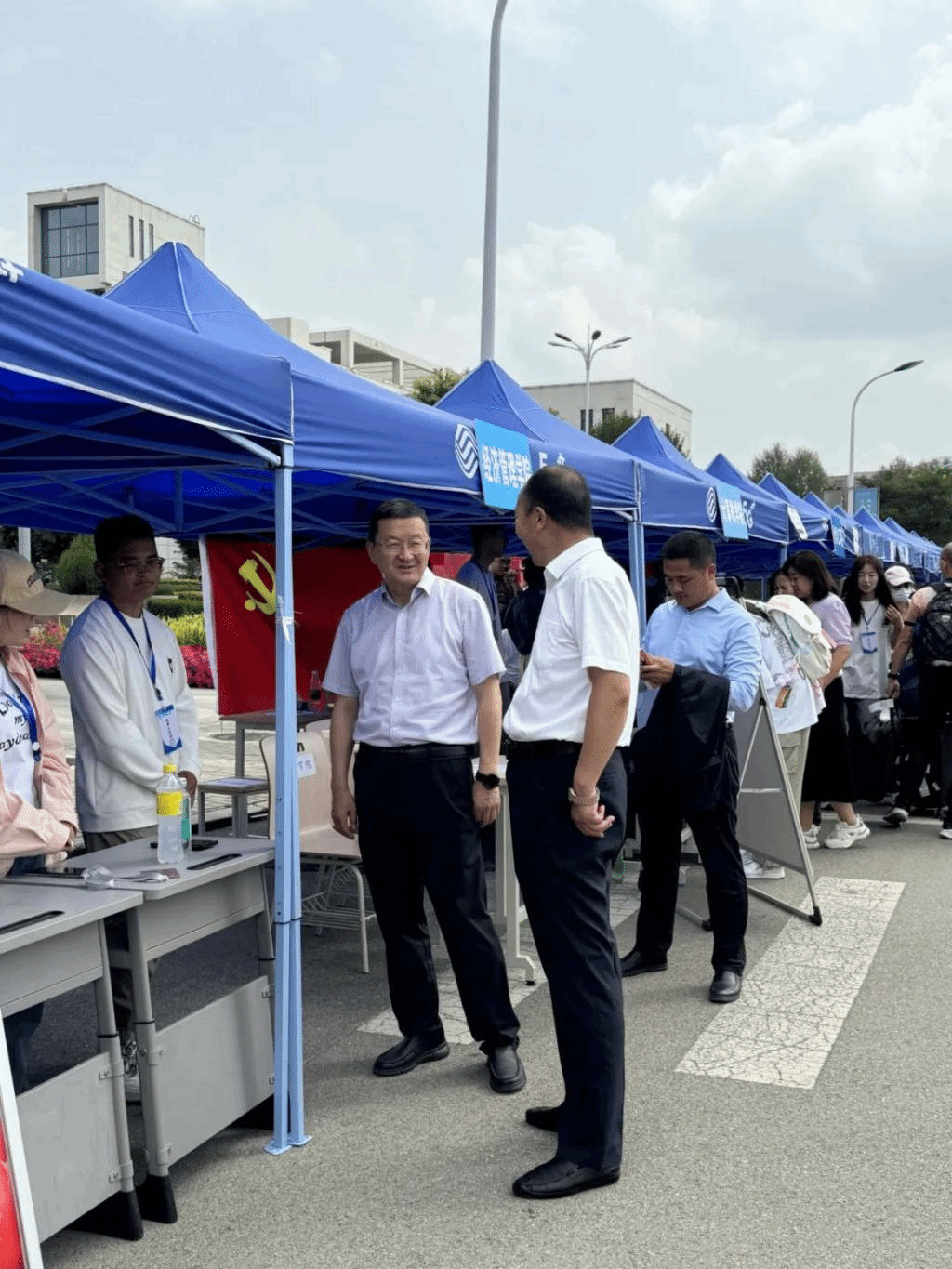 学院各系主任、老师、班主任、辅导员都来到了现场,热心地解答新生和家长们的问题,耐心地引导学生完成报到手续。 随后校领导与院领导们深入迎新工作现场,了解迎新进展。走访慰问现场师生和志愿者,实时关注新生入学动态。